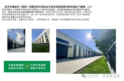 达孚乳化剂核心人员在乳化剂行业平均有近20年的从业经验,达孚食品&达孚生物与一大批食品、化工、医药等行业的专家、教授建立创新合作,从原料采购到产品出厂进行严格控制,确保产品质量达到各种相关标准。 强大的技术后盾,完善的生产设施,一流的服务队伍,铸造新一代乳化剂差异化定制专业供应商。