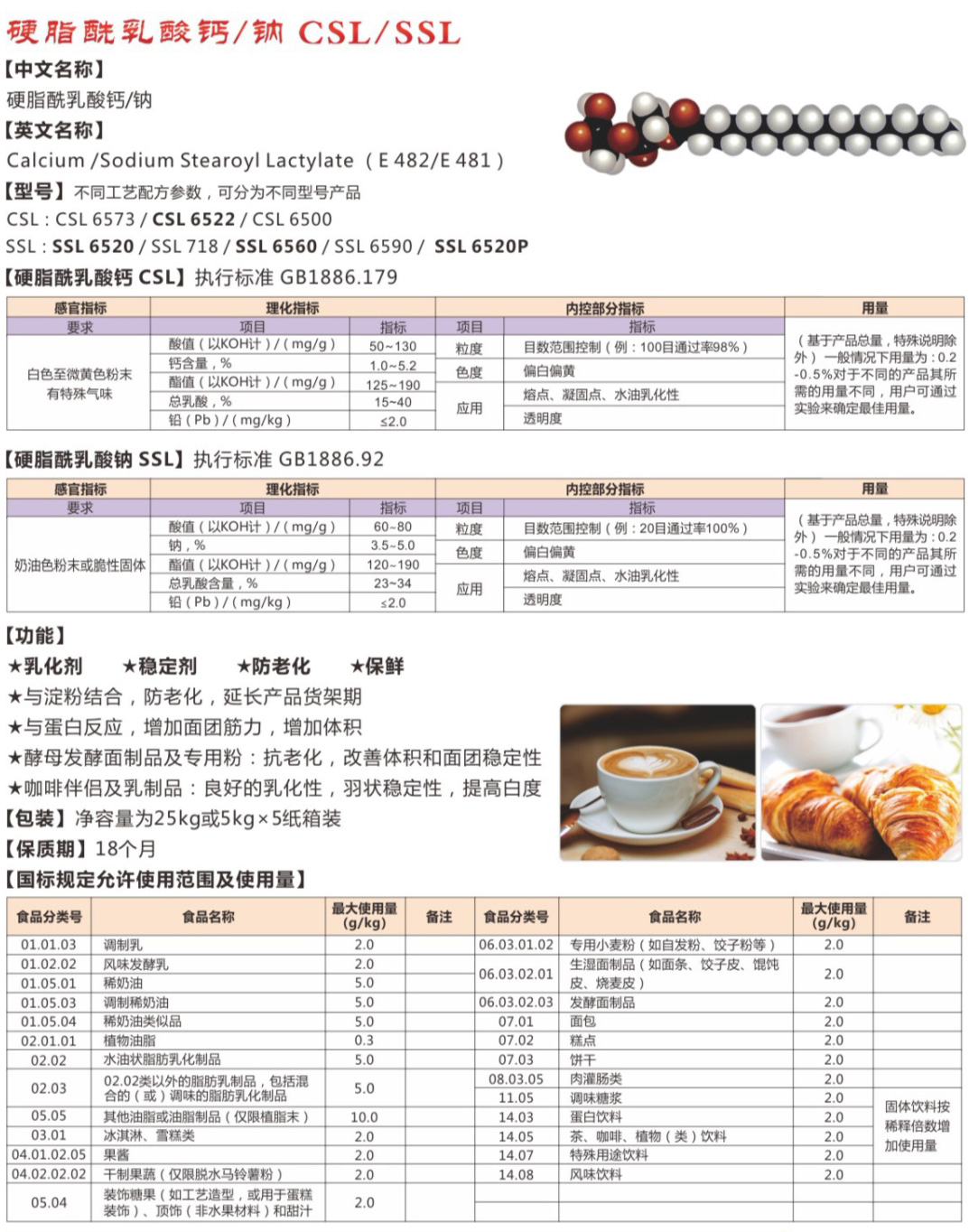 硬脂酷乳酸钙/钠 (CSL/SSL)