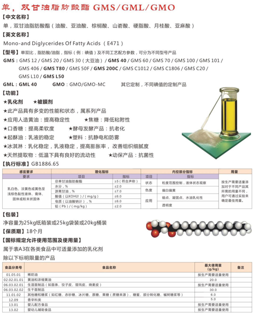 单,双甘油脂肪酸 (GMS/GML/GMO)